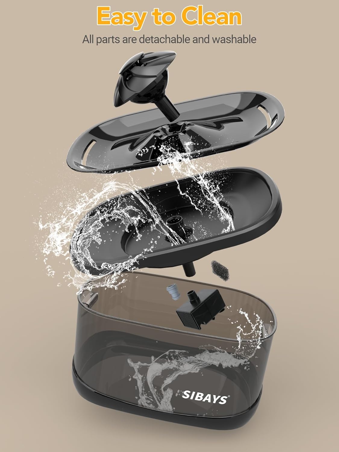 | Included Components | Brush x 1 + Tweezers x 1, Detachable Spout x 2, Filter x 1 + Pre-filter Sponge x 1, Pet Water Fountain x 1, Power Adapter x 1 |